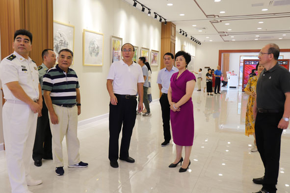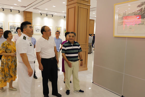 南平市人大常委會(huì)副主任、邵武市委書(shū)記何光松和張尚偉老師共同為“慶祝中華人民共和國(guó)成立70周年——邵武故鄉(xiāng)情·返鄉(xiāng)名家美術(shù)作品展”揭幕。(本文圖片由邵武市委統(tǒng)戰(zhàn)部提供)