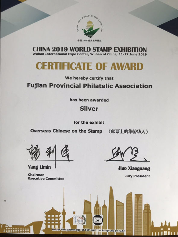 《郵票上的華僑華人》喜獲中國2019世界集郵展覽文獻(xiàn)類銀獎(jiǎng);