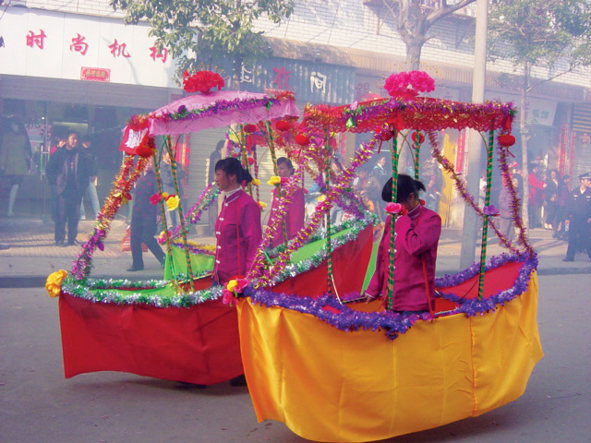 古時人們都是使用農(nóng)歷,來計算時間日子。清版《光澤縣志》“風(fēng)俗”篇記載了當(dāng)?shù)貜霓r(nóng)歷年初到年尾,四時年節(jié)都有自己特有的風(fēng)俗習(xí)慣。元旦,正月的元日,就是現(xiàn)在的春節(jié)初一。家家掛鐘馗像于庭中,謂之“辟邪除魅”。門上春帖以紅紙書聯(lián),還有色紙縷金錢或花草人物遍貼于廳柱門庭,謂之歲錢,“以著更華彩之意”。“五鼓爆竹開門”,家家放炮后,家中先焚香,男女穿著新衣,順序先謁拜天地賀新年。然后才開家門,向左鄰右舍道賀新年。說是過去有紛爭的鄰里通過新年互賀,舊有的怨恨也冰釋殆盡。各家備有禮物,走訪親友,請新女婿,喝酒吃肉慶賀。當(dāng)?shù)孛裰{曰:“賀歲喝到初五六,有酒也無肉。新年正月,“各坊迎神”。城中當(dāng)時8個坊輪流從初二開始迎接福神降臨,龍燈挨家拜。有錢人家或廟會招戲班看大戲,演贛劇和當(dāng)?shù)厝菓颍瑧c祝升平。沿街裝飾樓臺,夜點花燈,龍燈、獅燈、茶燈、船燈、花燈、蚌殼燈等燈舞鬧年一直到元宵。立春,常在正月,接春在當(dāng)?shù)厥谴蠊?jié),一年之際在于春。時辰一到,家家戶戶放炮,擺上供桌供品。用白菜和蔥蒜等綠葉長青的菜用紅線扎起,以示“迎春接福”“新春大吉”之意和春天萬木興榮的好兆頭。初九是玉皇大帝生日,興辦祭祀活動。“上元觀燈”,初十至十五特別是元宵節(jié)張燈結(jié)彩,鼓樂花燈,徹夜不息。十五過后,“里塾就學(xué)”,家人的子侄后輩開始擇吉日延師課以詩書,農(nóng)工商賈各開始就業(yè)。當(dāng)?shù)刂V語:“燒訖上元紙,各人安生理。”