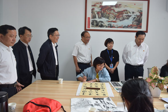 中共福建省委常委、組織部部長(zhǎng)楊賢金(右一),南平市委組織部長(zhǎng)林旭陽(yáng)(左三)、邵武市委書記何光松(左四)等到邵武西門社區(qū)調(diào)研基層黨建陣地建設(shè)。
