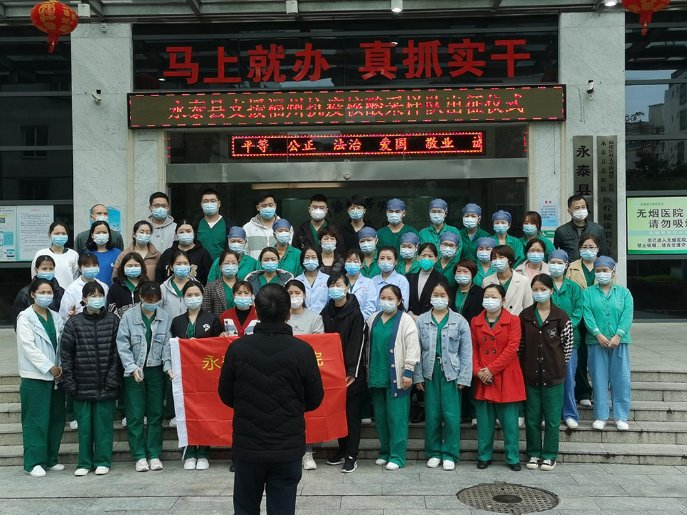 2022年3月26日傍晚,永泰縣總醫(yī)院接到梧桐鎮(zhèn)防疫指揮部求助電話,在梧桐封控區(qū)內(nèi)一名72歲淋巴瘤患者因胸腔、腹腔積液導(dǎo)致持續(xù)呼吸不暢,病情緊急,縣總醫(yī)院立即為患者開通“綠色通道”,僅一個(gè)小時(shí)專用救護(hù)車就將患者點(diǎn)對點(diǎn)送至醫(yī)院就醫(yī)。永泰縣總醫(yī)院醫(yī)務(wù)部副主任張曉琳介紹:永泰縣醫(yī)院作為封控區(qū)患者定點(diǎn)救治醫(yī)院,抽調(diào)醫(yī)護(hù)人員24小時(shí)輪班,晝夜值守,參與救治,全力保障封控區(qū)人員正常就醫(yī)需求,開通各類危急重癥患者救治的全天候閉環(huán)綠色通道,堅(jiān)決實(shí)行應(yīng)收盡收,做好緊急救治的充足準(zhǔn)備。2022年10月26日,隨著“不速之客”新冠病毒再次來襲,永泰縣縣再次吹響了戰(zhàn)疫“集結(jié)號(hào)”,先后啟動(dòng)了石圳方艙、幸福莊園酒店、歐樂堡酒店、冠景酒店、君瀾酒店等5個(gè)隔離點(diǎn)。隔離點(diǎn)作為離“陽”最近的前沿陣地,是疫情防控成敗的重要防線。縣總醫(yī)院聞令而動(dòng),積極響應(yīng)組織召喚,40名醫(yī)護(hù)人員(醫(yī)生21名、護(hù)士19名)緊急奔赴各個(gè)疫情防控集中隔離點(diǎn)一線,24小時(shí)堅(jiān)守崗位。