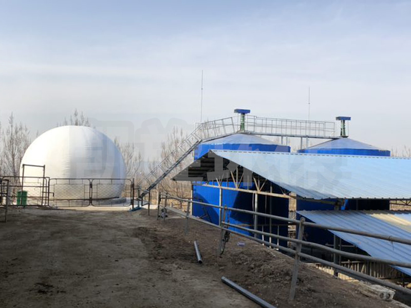 雙層膜沼氣罐外型為3/4球體,由鋼軌固定于水泥基座或厭氧罐罐頂上。主體由特殊加工聚酯材質(zhì)制成,罐體由外膜、內(nèi)膜、底膜(地上柜)及附屬設(shè)備組成,具有抗紫外線及種微生物的能力,高度防火并符合標(biāo)準(zhǔn)。